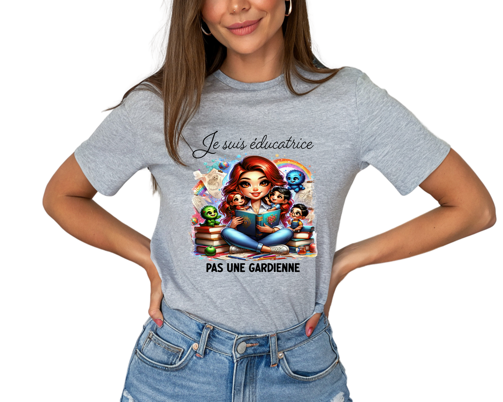 Affiche fièrement ta passion pour l’éducation à la petite enfance avec ce t-shirt léger, confortable et engagé. Conçu spécialement pour les éducatrices qui souhaitent faire rayonner leur rôle essentiel, ce chandail met de l’avant un visuel vibrant et coloré représentant une éducatrice entourée d’enfants et d’éléments éducatifs.